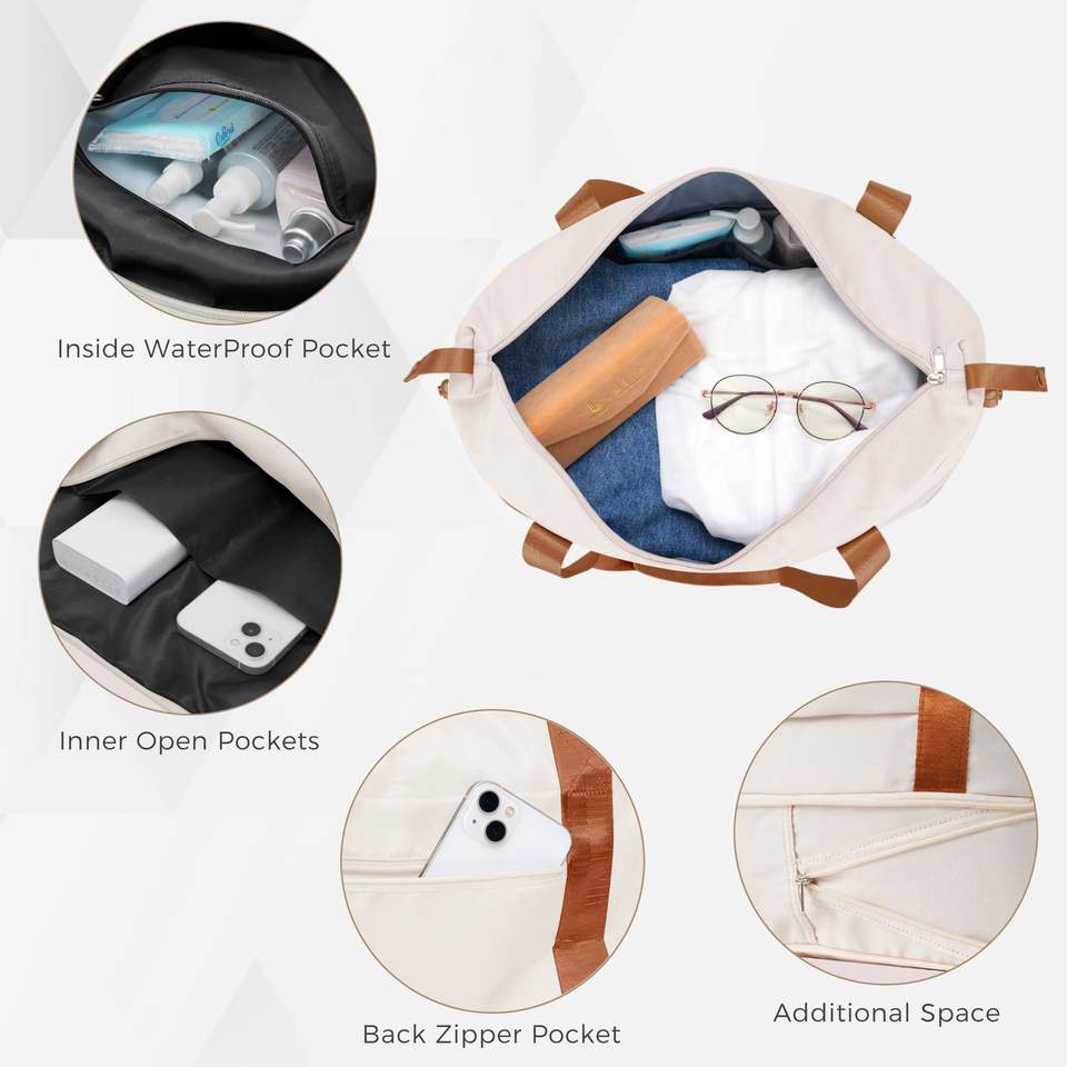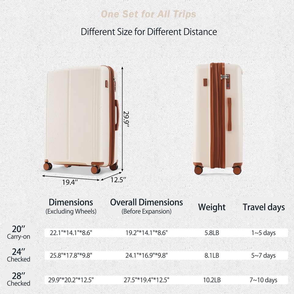 4 Piece Expandable PP Lightweight Luggage Set 360 Degrees Spinner Wheels Ivory Brown Travel Bag Carry Suitcase Set