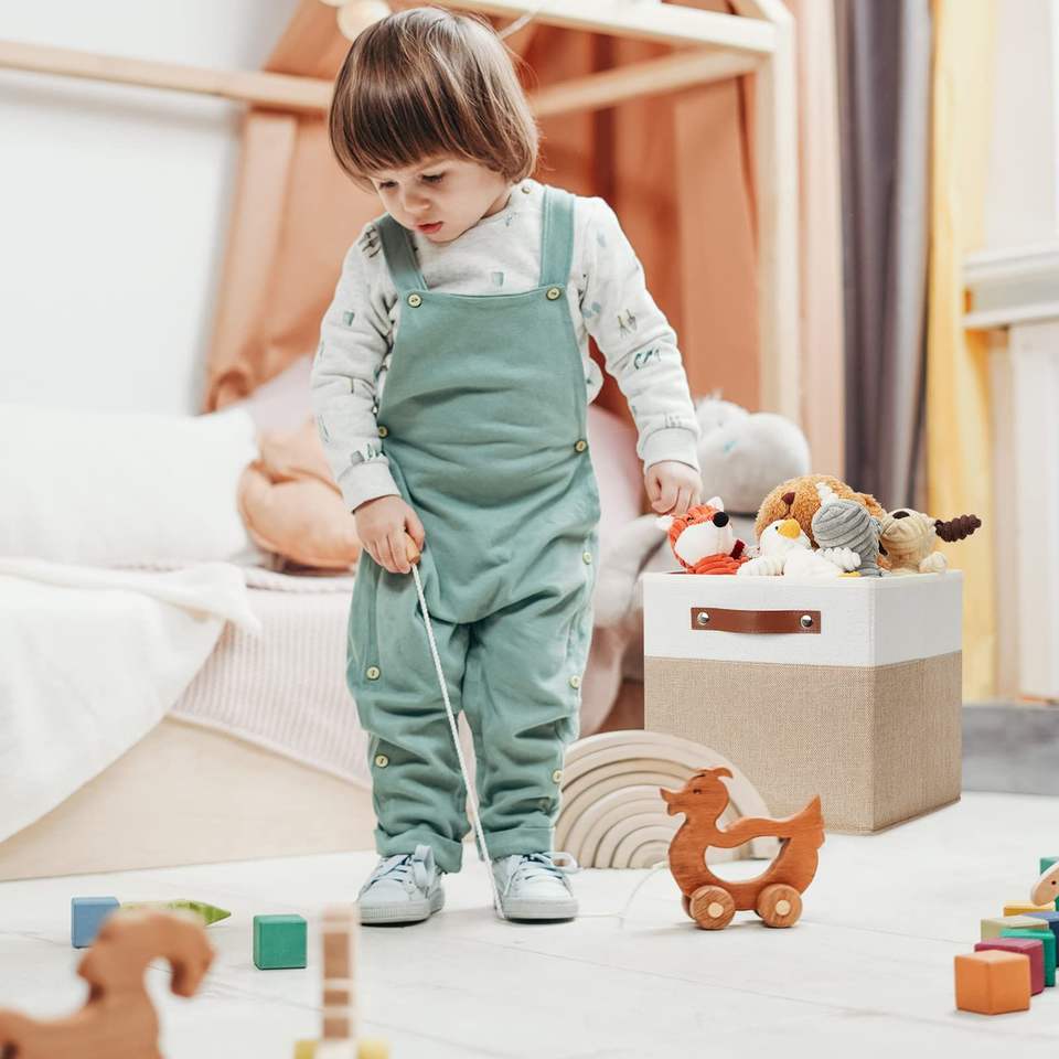 Set di 4 Cubi Portaoggetti in Tessuto 11 X 11, Cesti Decorativi con Manici per Scaffali, Contenitori Cubici Pratici ed Estetici