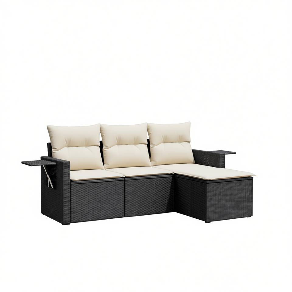 Set Divano da Giardino 4 Pezzi in Rattan PE Nero con Telaio in Acciaio Verniciato a Polvere, Arredamento da Esterno dal Design Contemporaneo