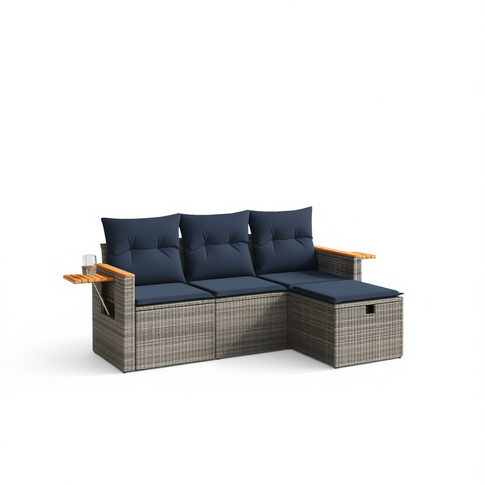 Set Divano da Esterno in Polyrattan Grigio con Cuscini, Design Contemporaneo, Mobili Impermeabili per Giardino