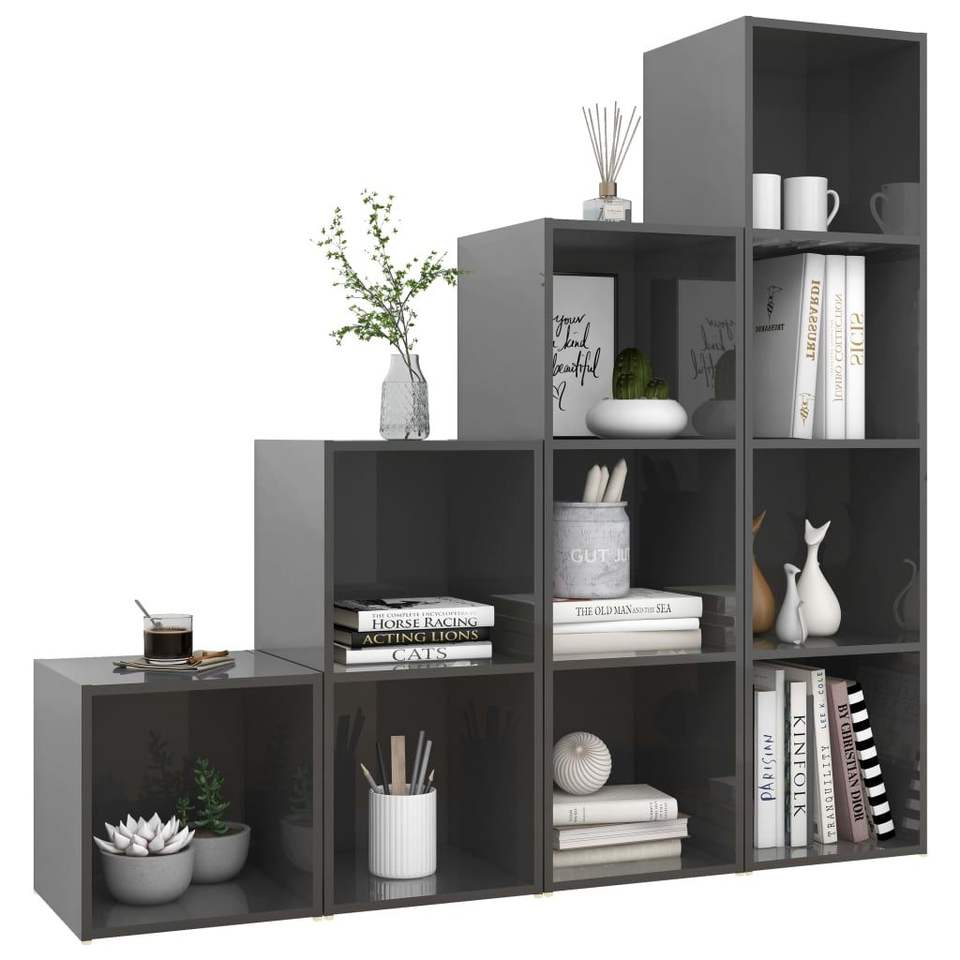 4-Piece High Gloss Gray Engineered Wood TV Cabinet Set for Living Room