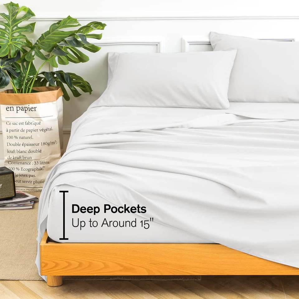 4-Piece Microfiber White Hotel/Hospital/Home Textile Soft Breathable Soft Feeling King/Queen Size Fitted Sheet Set Flat Sheet