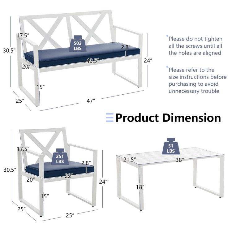 Set di Mobili da Esterno in 4 Pezzi con Telaio in Acciaio Resistente per Conversazioni