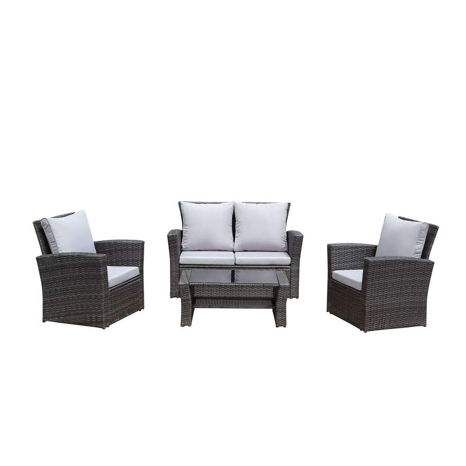 4 pezzi in vimini da esterno Set di mobili da giardino in Rattan con cuscini grigi