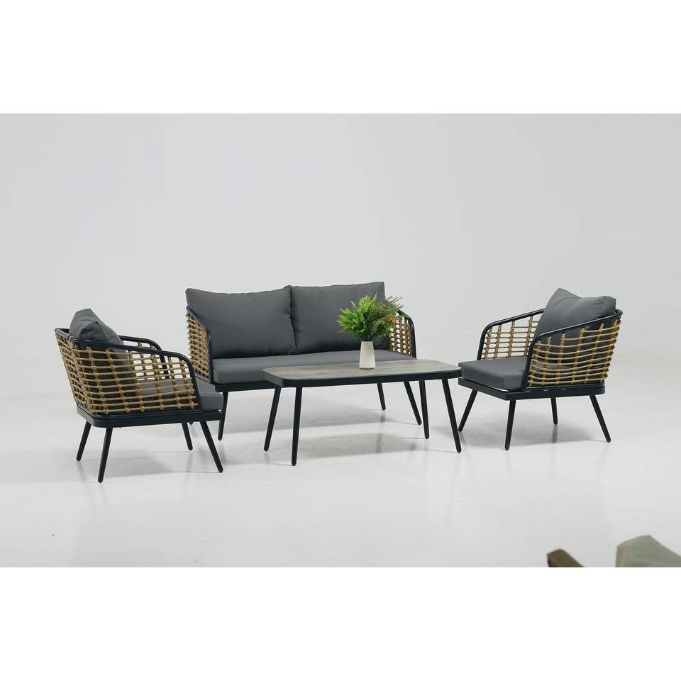 4-Piece PE Rattan Wicker Patio Furniture Set Outdoor Sofa Tempered Glass Tabletop Washable Cushions Garden Poolside Balcony