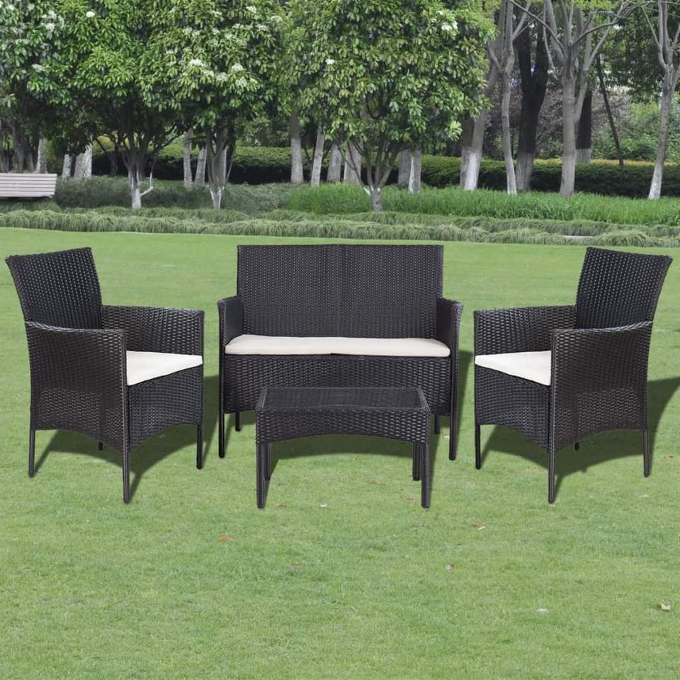 4-Piece Poly Rattan Black Patio Lounge Set with Cushions for Garden Use