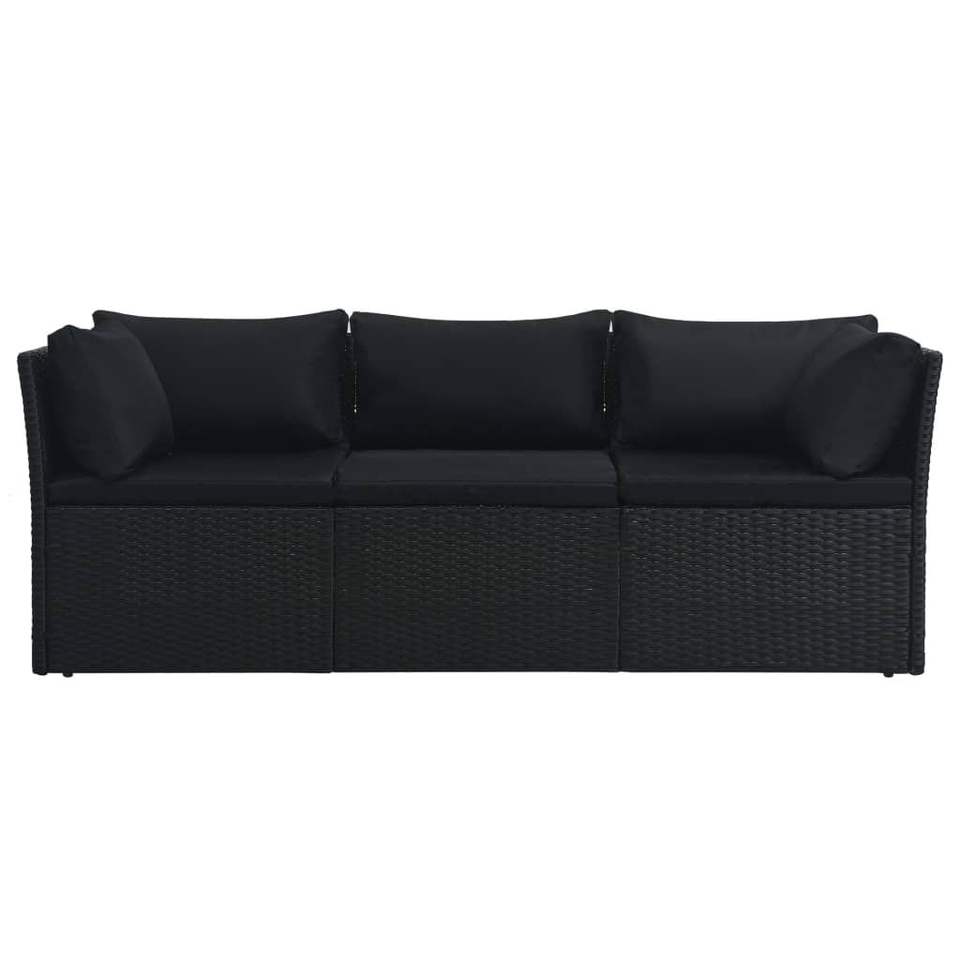 Set salotto da giardino in Poly Rattan 4 pezzi con cuscini di colore nero