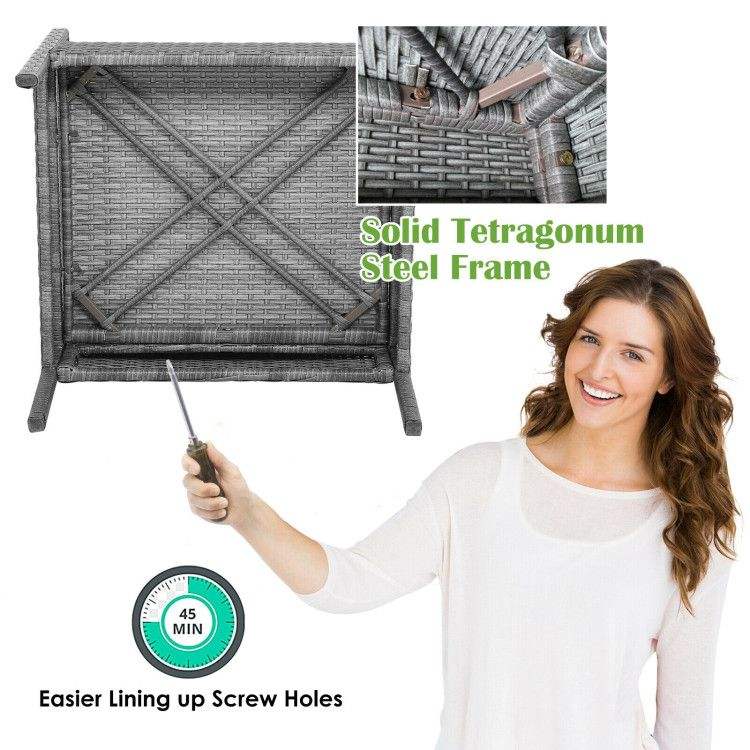 Set di mobili da giardino in rattan grigio da 4 pezzi con piano in legno di acacia per conversazione e relax