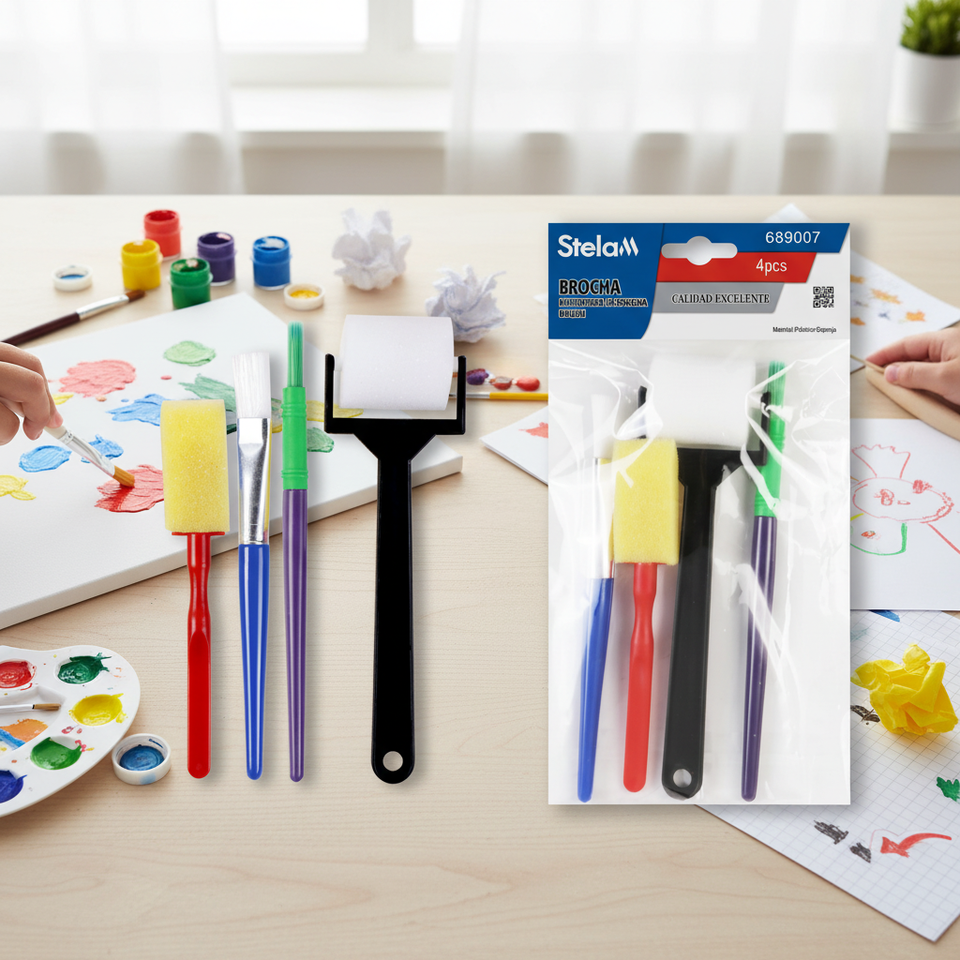 Set di rulli e spazzole in spugna da 4 pezzi per progetti di pittura e artigianato per creatività e immaginazione