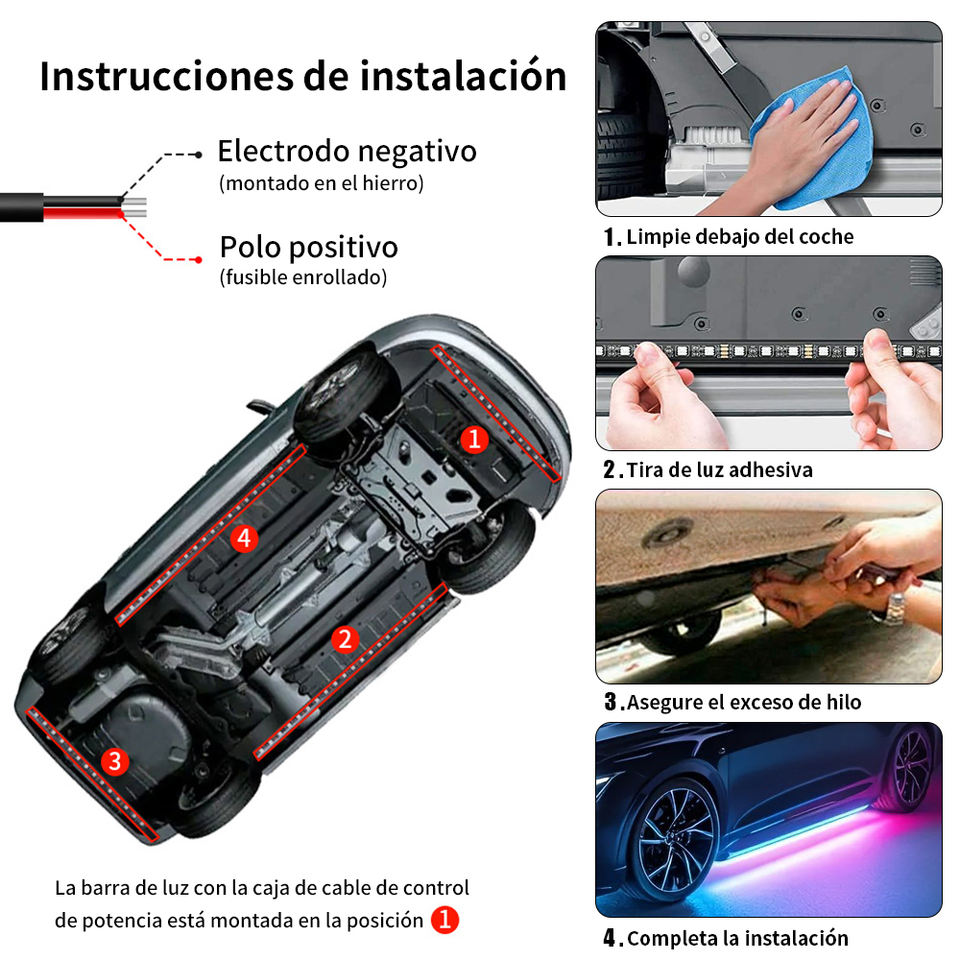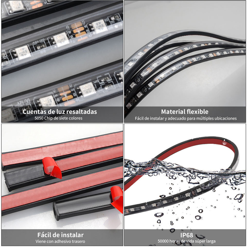 Kit Luci Auto Neon Impermeabili 4 Pezzi 2 X 120 cm & 2 X 90 cm Sorgente LED WS2812B Tipo PCB Nero Controllo App