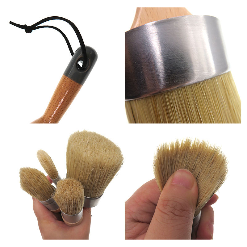 4 pezzi di gesso e cera pennelli includono piatto e 2.5 ''pennello con gesso rotondo manico in legno per la pittura di superficie del mobile