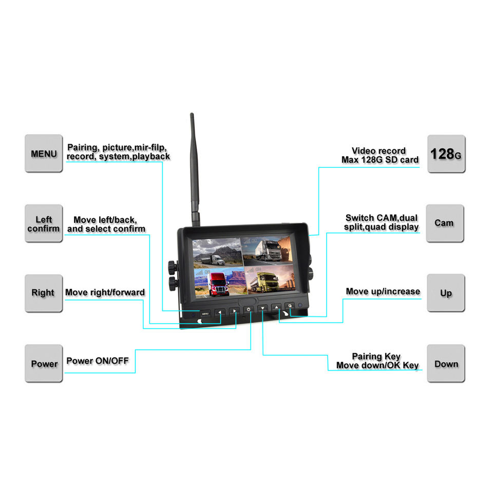 Sistema di Telecamera Retromarcia Wireless a 4 Pin con Monitor per Camion e Auto