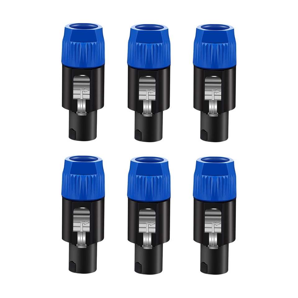 Connettore Speakon BLU a 4 Poli, Set da 6 Pezzi, Jack Audio con Blocco a Torsione, Spina Maschio per Altoparlanti e Amplificatori, Adattatore per Cavo a 4 Conduttori