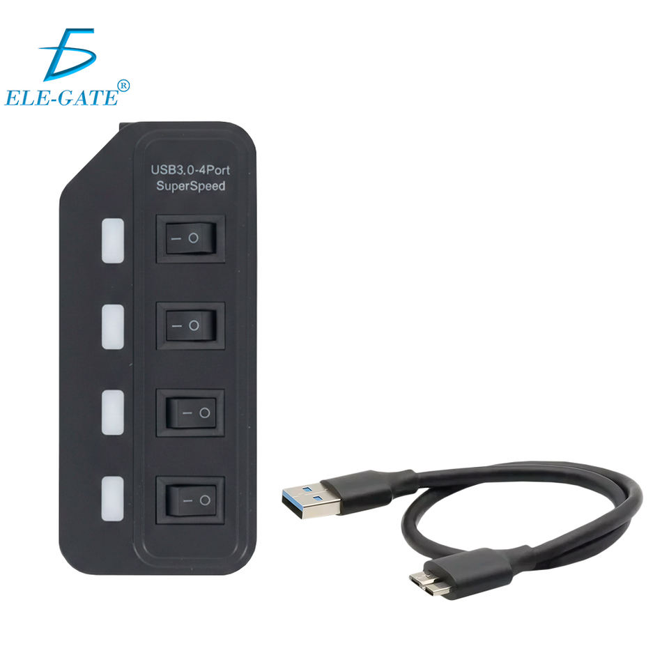 Hub USB 3.0 a 4 Porte con Interruttori e Luce LED Blu, Funzione Doppio Monitor, Trasferimento Dati, Interfaccia SD, Realizzato in Lega di Alluminio
