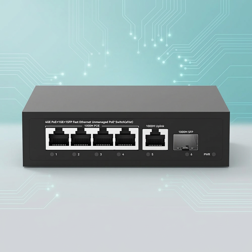 4*1000M POE ports + 1*1000M Uplink port + 1*SFP Optical port