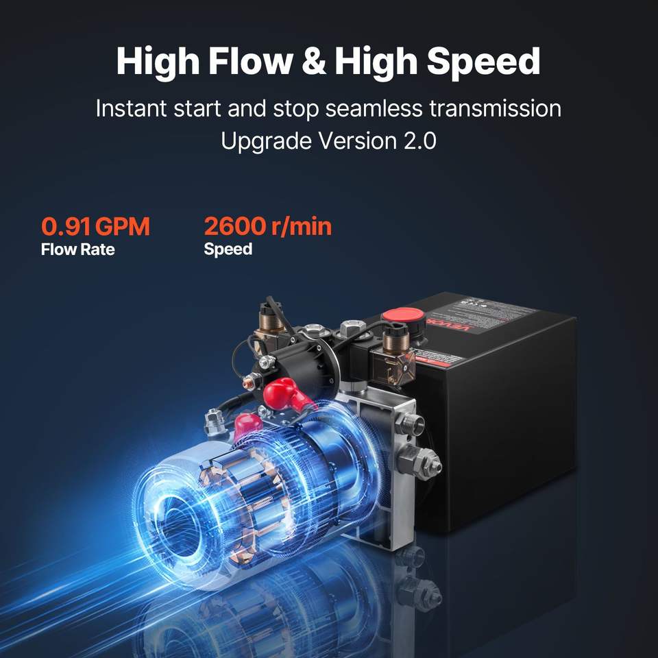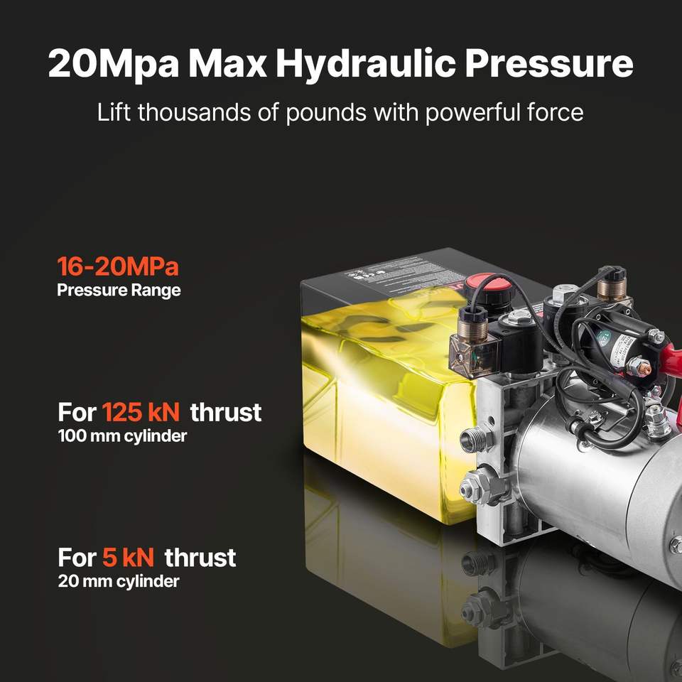 Centralina Idraulica da 4 Quarti per Pompa Rimorchio Ribaltabile, Doppia Azione, Pressione Massima 3200 PSI, 0.91 GPM, per Rimorchi Utilitari da Carico