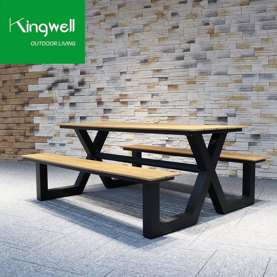 4 Seater Commercial Outdoor Aluminum Luxury Table and Bench Set with Park Furniture for Hotel and Villa Use