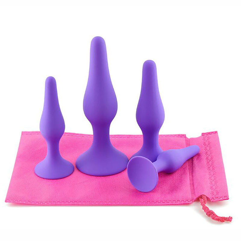 Set di 4 Plug Anali in Silicone per Donna Misure S M L XL, Giocattoli per Adulti