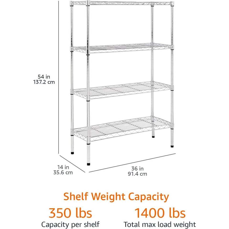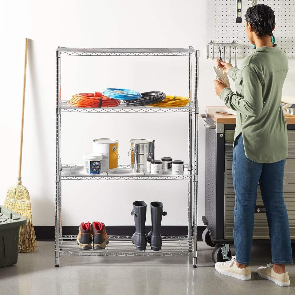 Scaffale in Acciaio a 4 Ripiani, Facile da Montare, Capacità 350 Libbre per Ripiano, Unità di Stoccaggio Regolabile per Cucina e Garage, Altezza 36 Pollici