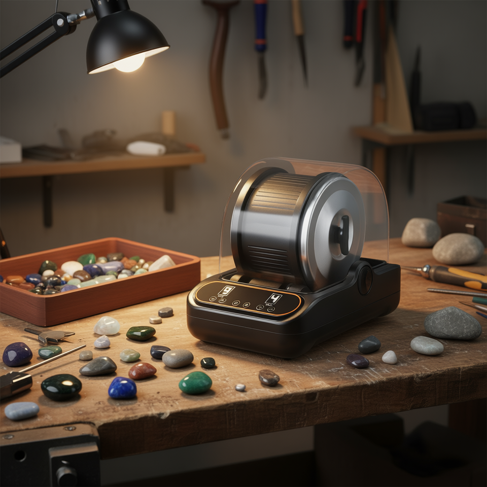 Lucidatrice per pietre da 3 libbre con motore a trasmissione diretta, macchina elettrica per lucidatura a umido con copertura in PC e tamburo in TPU