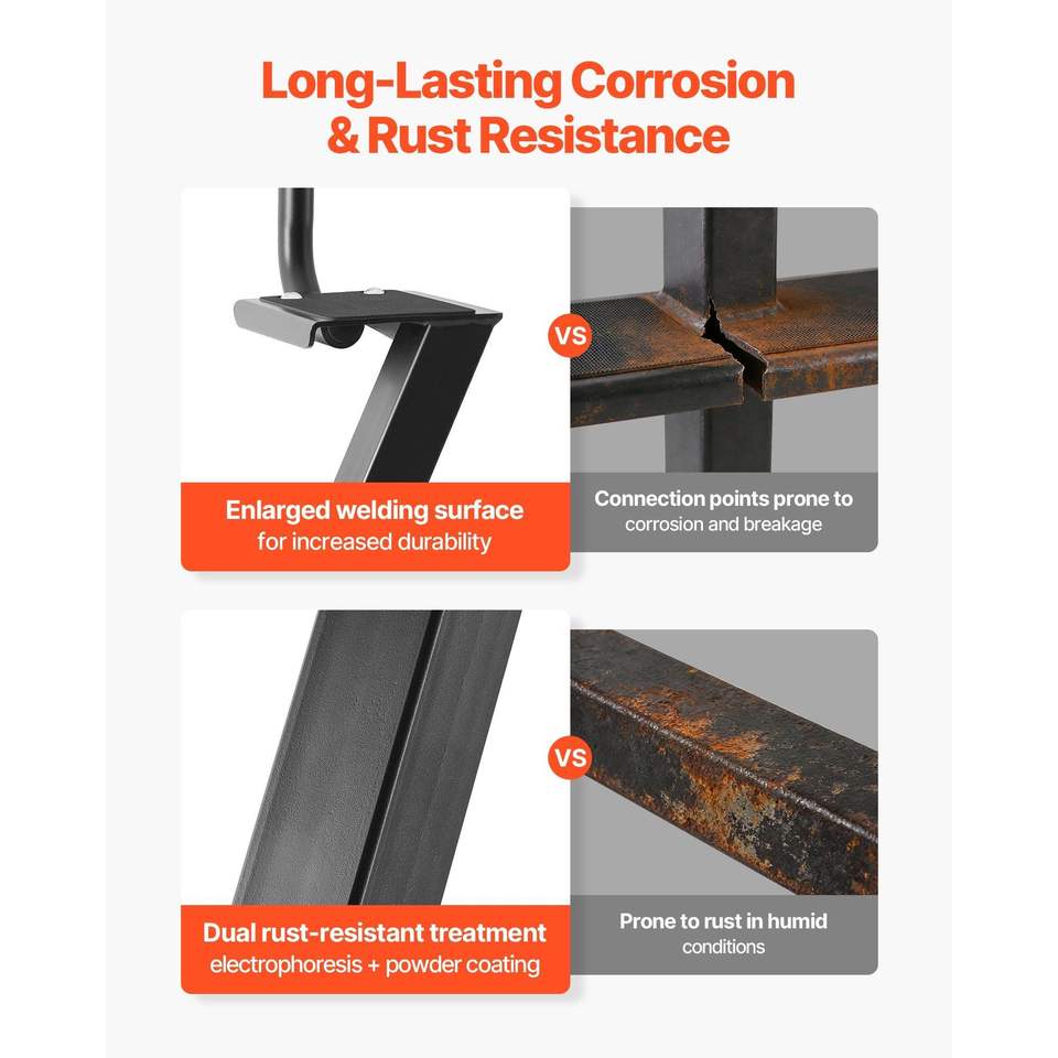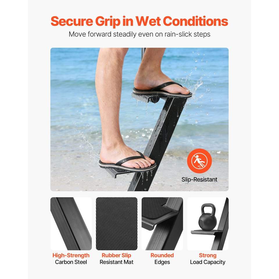 Scaletta a 4 Gradini in Acciaio al Carbonio Rinforzato per Rimorchio Barca con Maniglia Antiscivolo e 3 Opzioni di Angolo di Montaggio