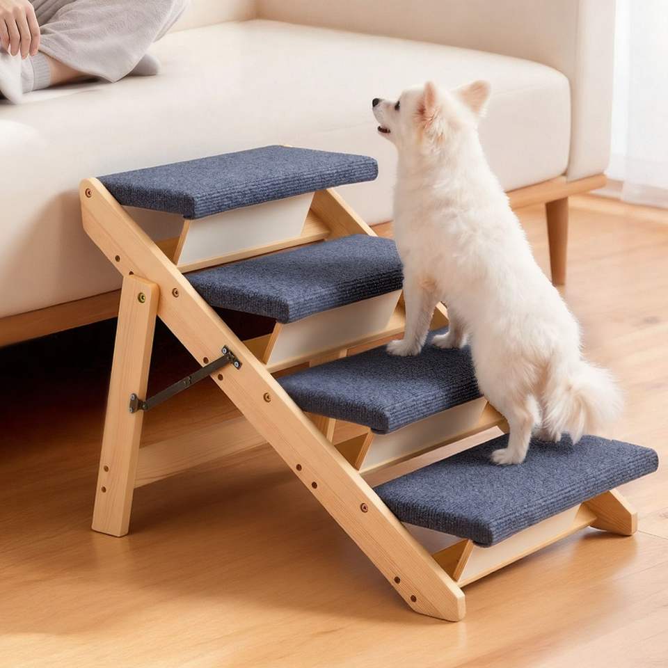 Scala per Animali Domestici in Legno a 4 Gradini, Capacità di Carico 150 libbre, Design Stabile e Robusto per Letti, Divani, Auto, per Gatti e Cani