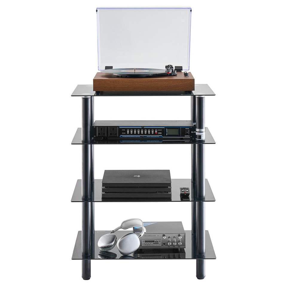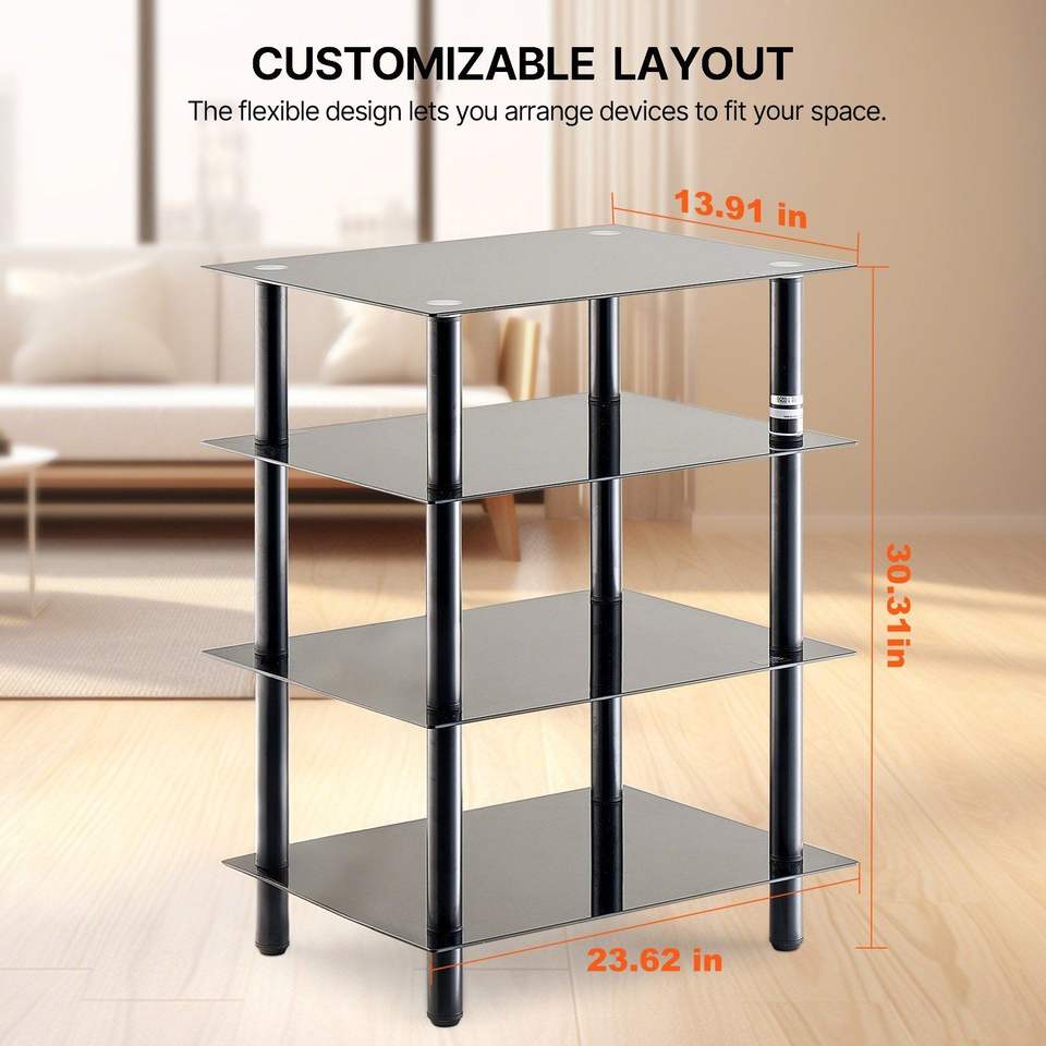 Mobiletto Porta TV a 4 Ripiani con Ripiani in Vetro Temperato Rinforzato, Sistema Home Theater per Conservazione di DVD/Decoder/Console di Gioco