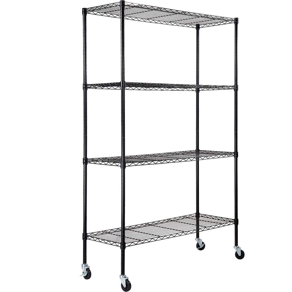 Scaffalatura Metallica a 4 Ripiani Regolabili per Garage, Capacità 700 Libbre, Unità di Stoccaggio con Ruote, Scaffali a Rete per Garage