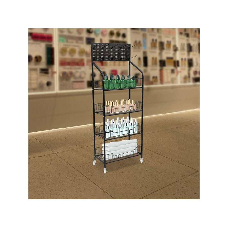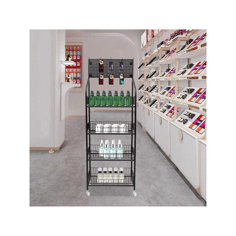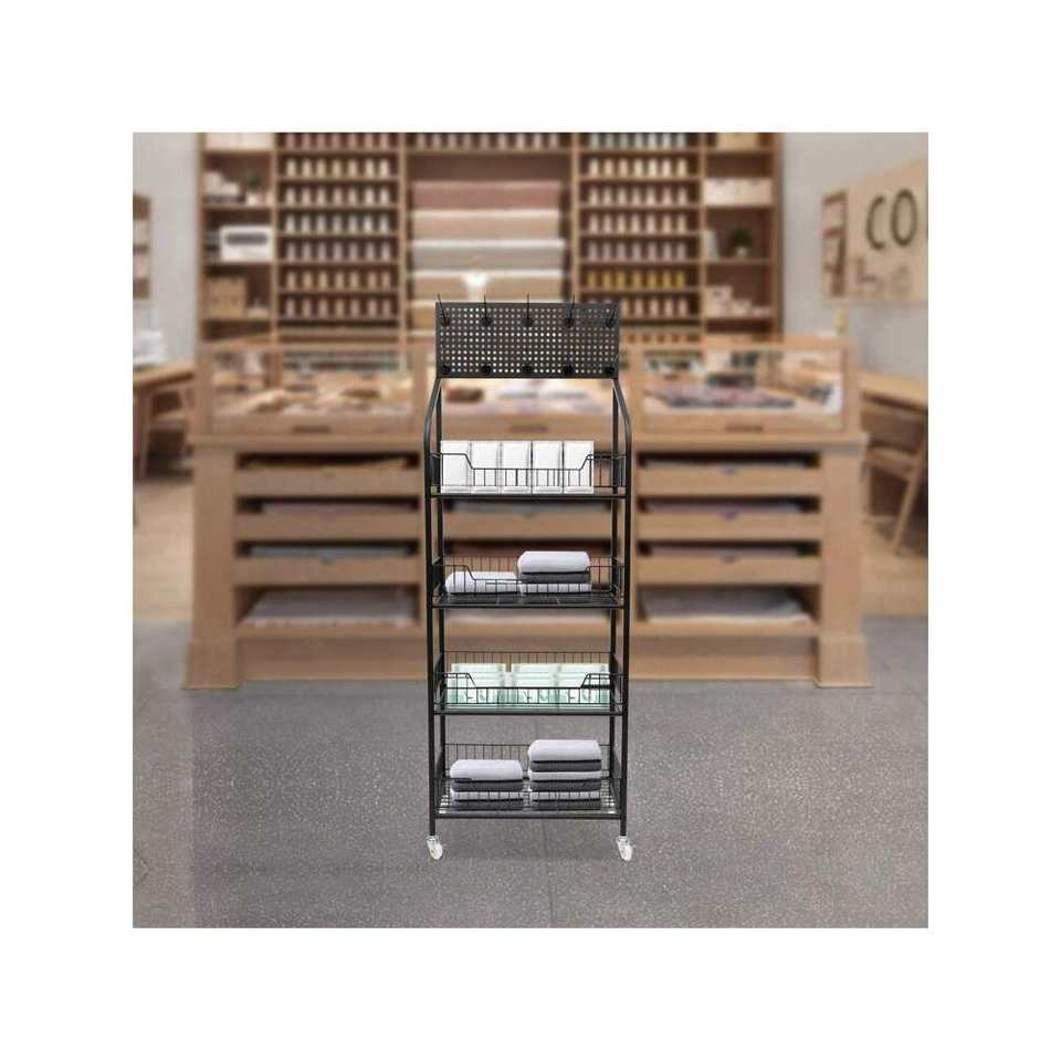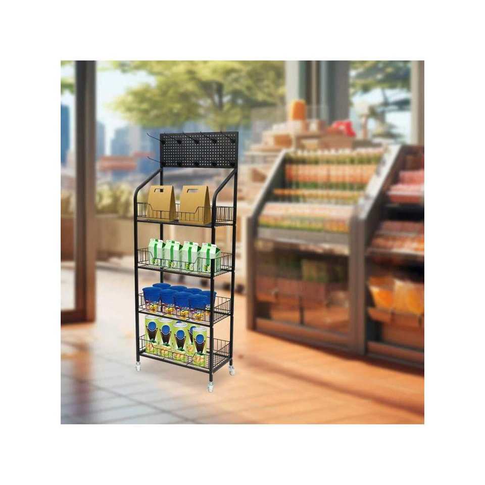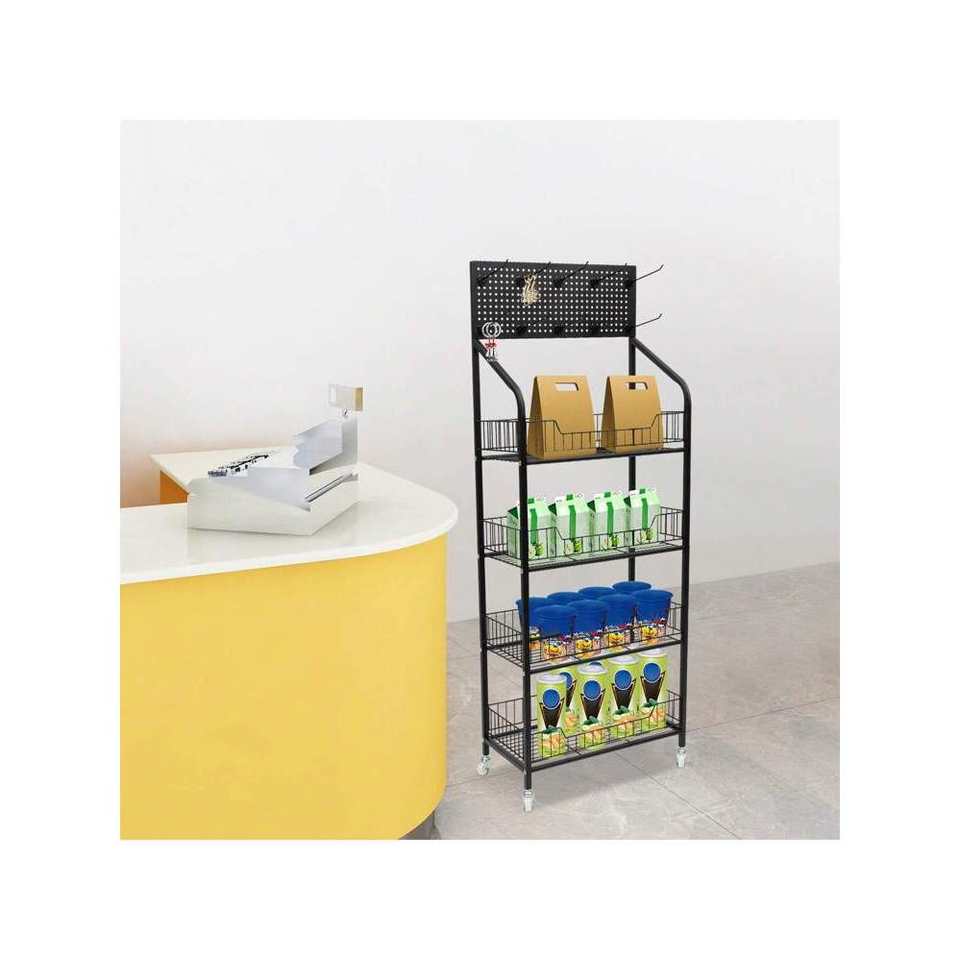4-Tier Black Metal Snack & Candy Display Rack Stand for Home Use Retail Storage Organization in Kitchens Bedrooms Bakeries