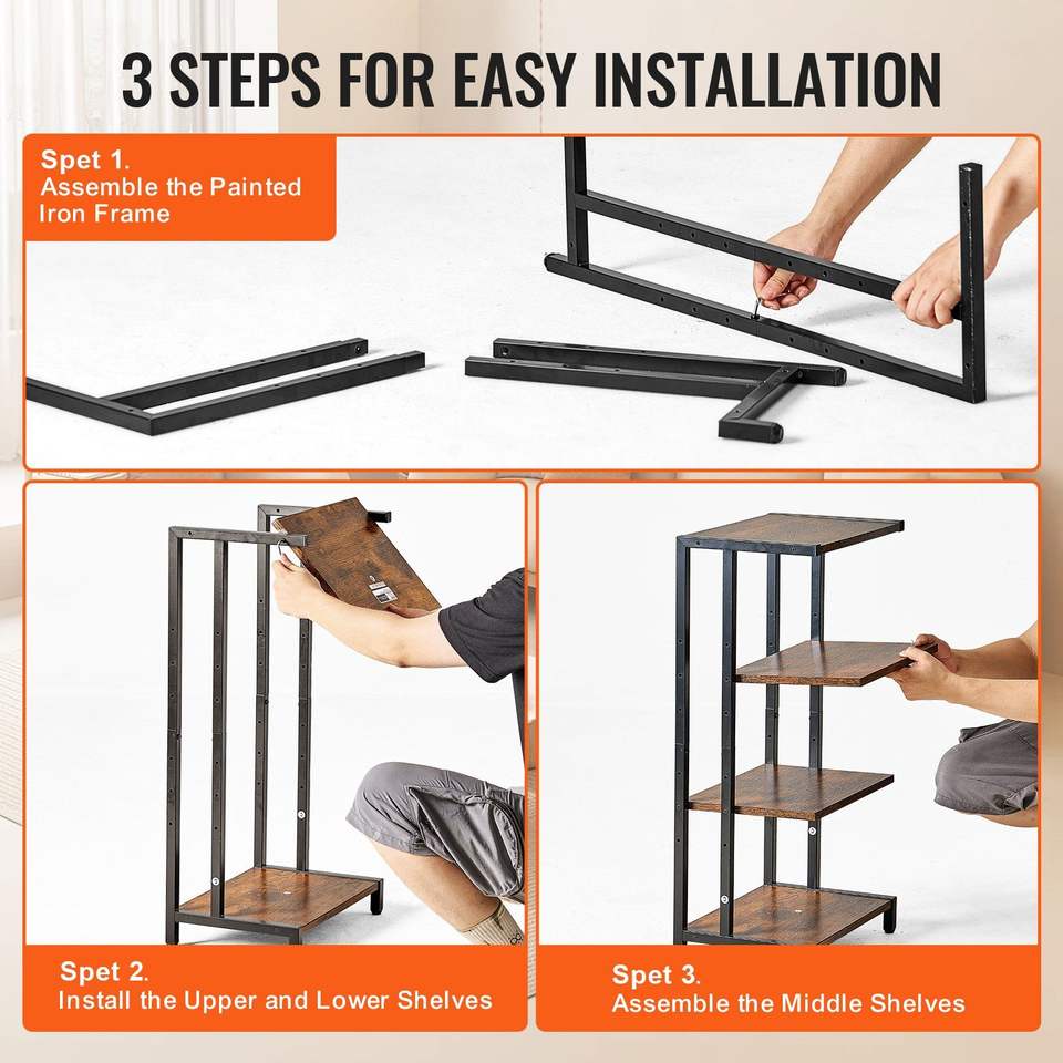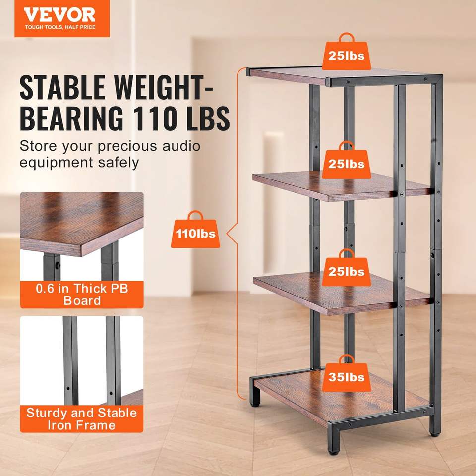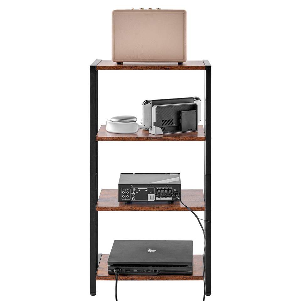Mobiletto Angolare a 4 Ripiani per TV e Dispositivi Multimediali, con Mensole in Legno Regolabili in Altezza per Lettori DVD, Decoder, Console di Gioco - Marrone