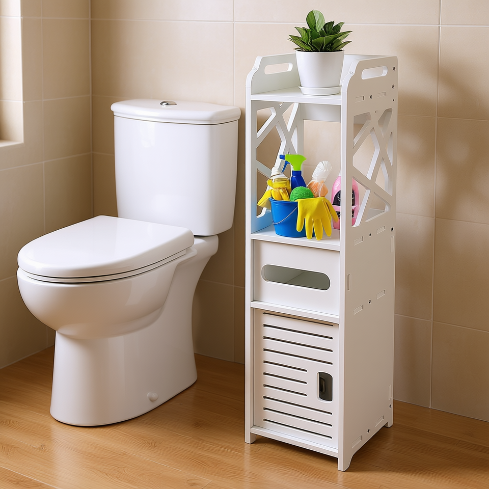 4 Tier Free Standing Bathroom Storage Rack With 2 Carved Doors Plastic Organizer Cabinet For Bathroom