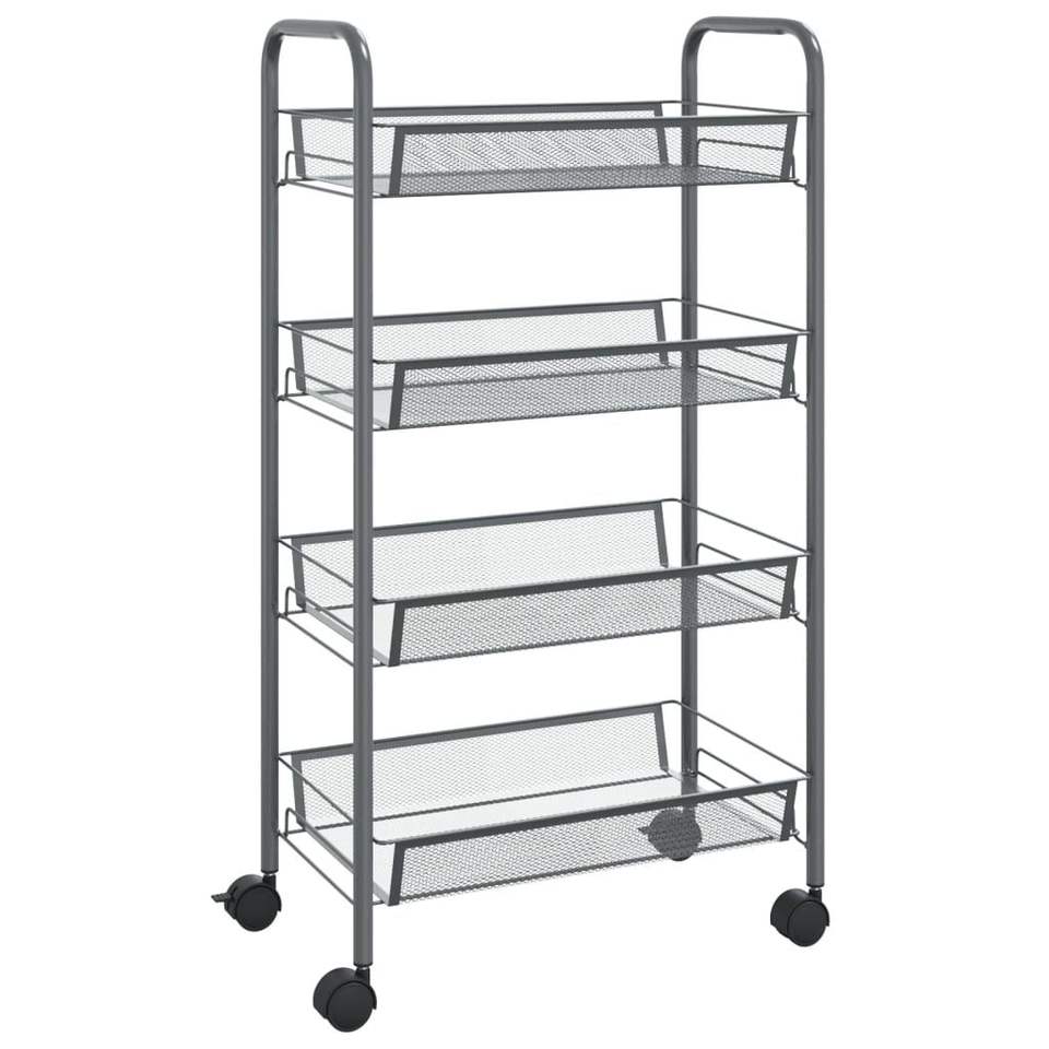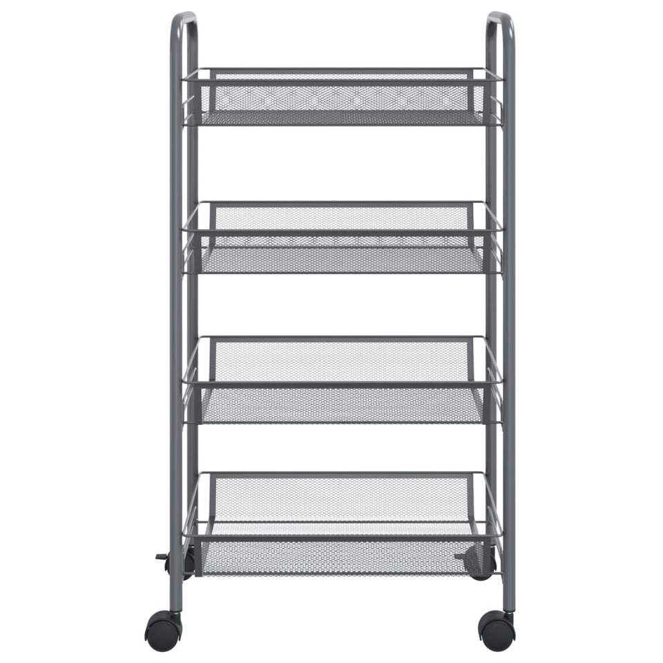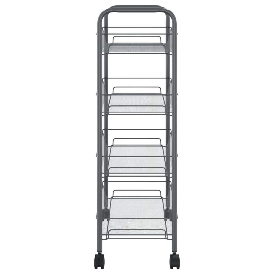 Carrello da Cucina a 4 Ripiani in Ferro Grigio 18.1"x10.2"x33.5" con Scaffale Portaoggetti