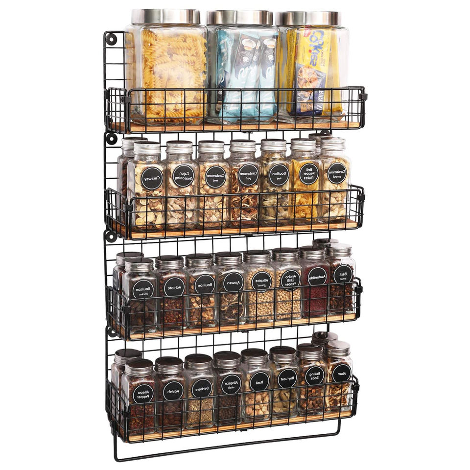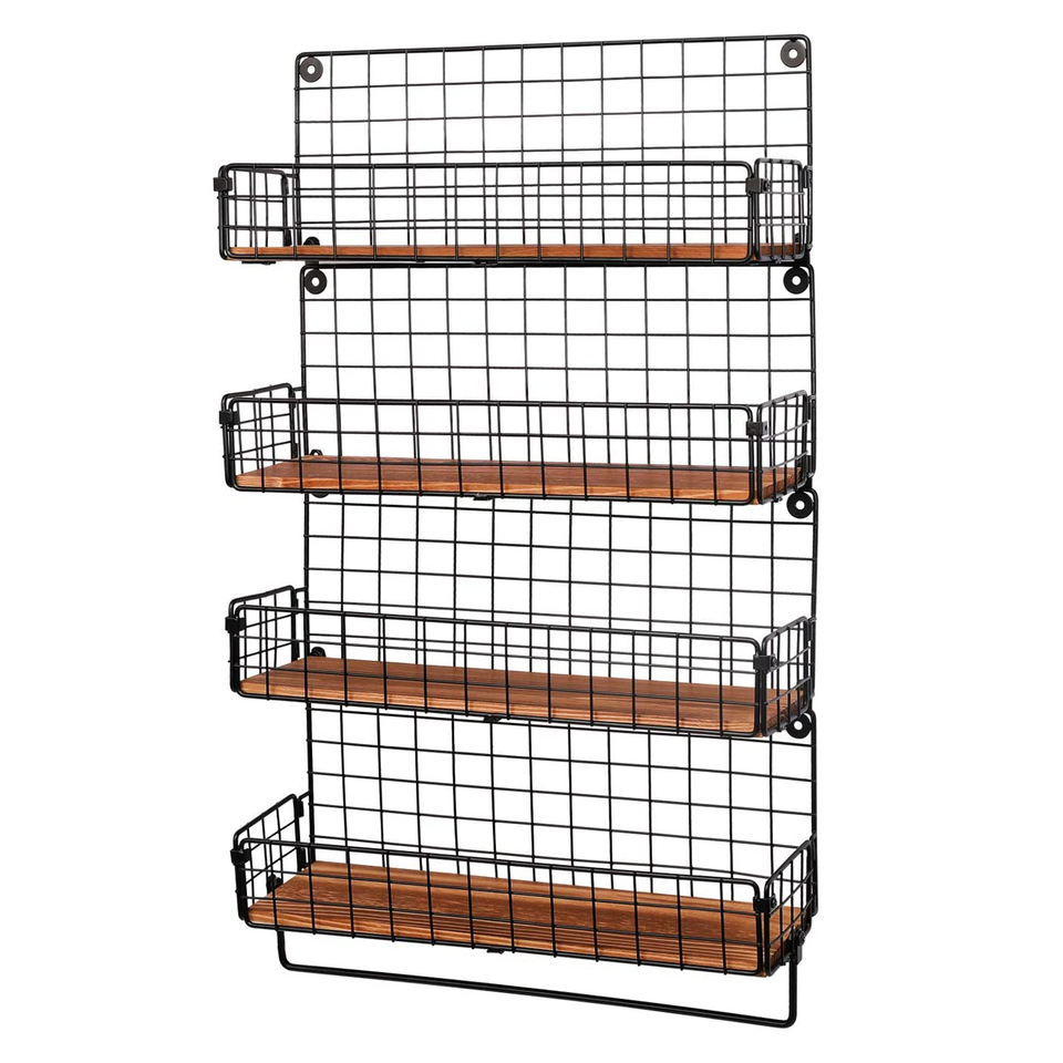 4 Tiers Wall Mount Metal Mesh Kitchen Spice Rack Holder Organizer