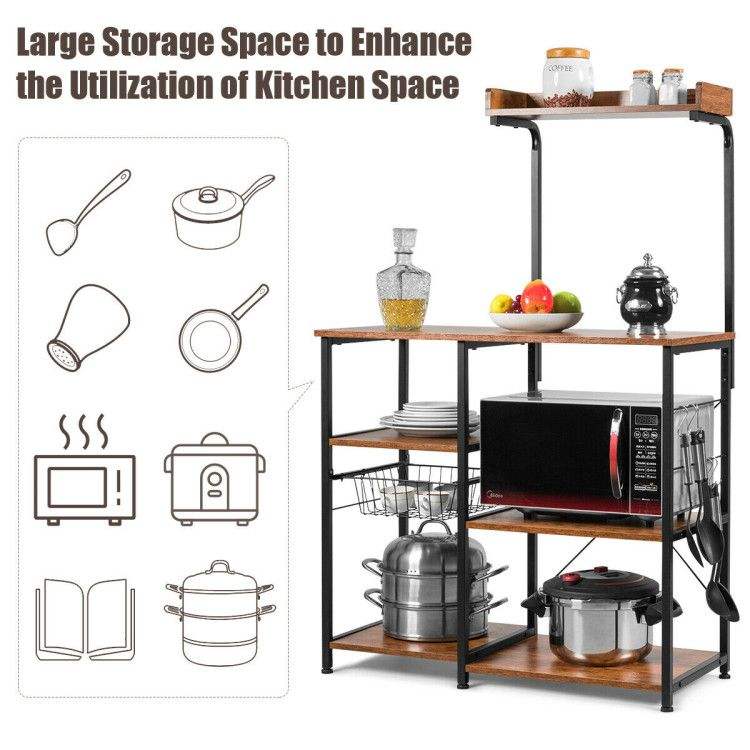 4-Tier Kitchen Baker's Rack with Basket and 5 Hooks Storage Holders & Racks