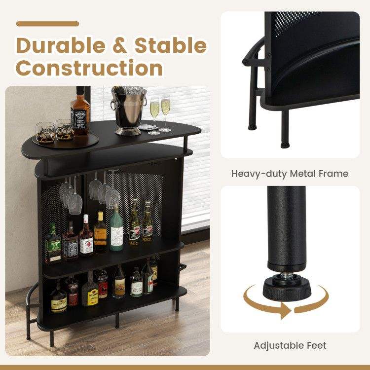 Tavolo Bar a 4 Ripiani con 3 Portabicchieri e Scaffali Portaoggetti