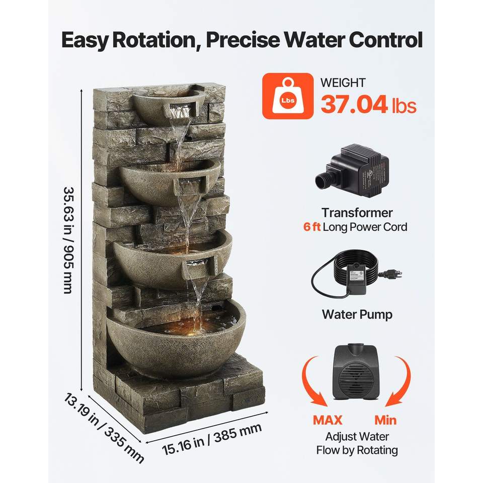 4-Tier esterno cortile fontana 35.63 in blocco Stack stile durevole acqua caratteristica per gli spazi di vita all'aperto