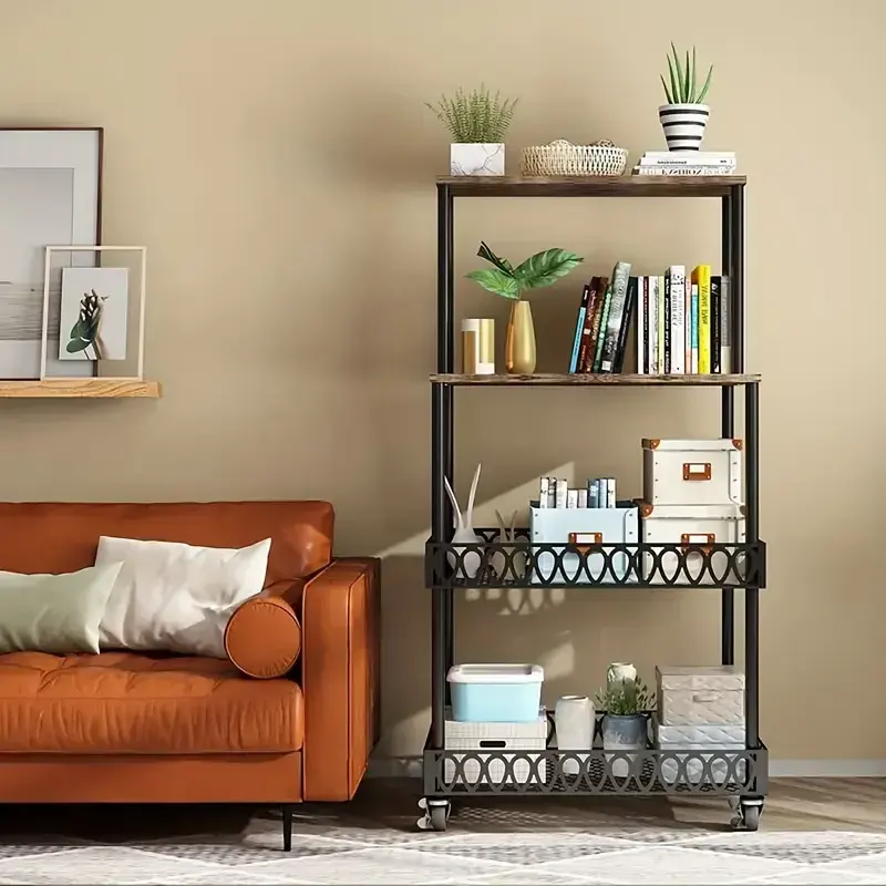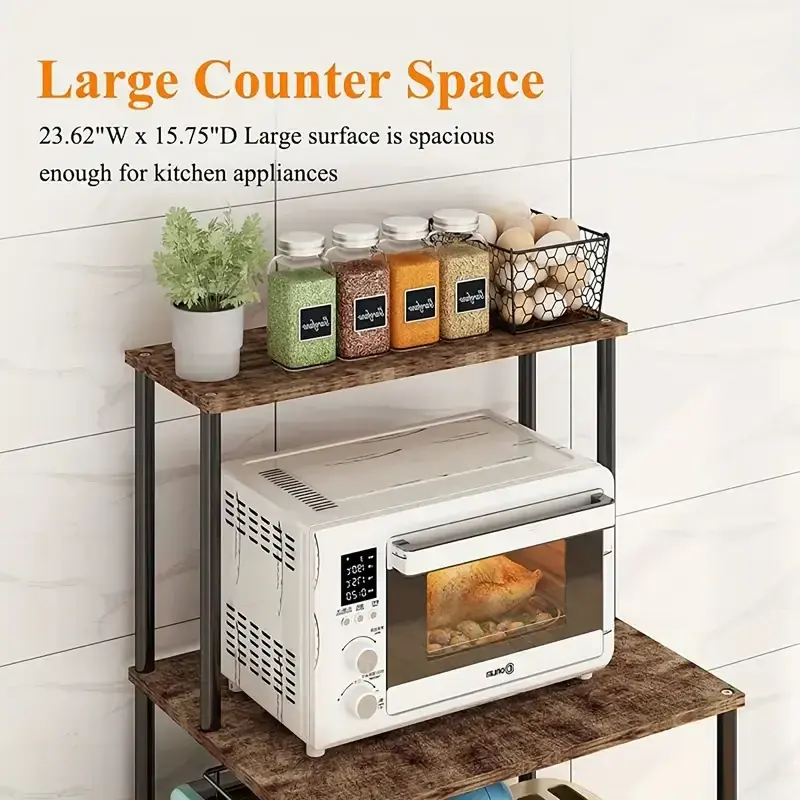 4-Tier Rustic Brown Freestanding Kitchen Storage Rack Baker Coffee Bar Station Microwave Stand Organizer for Spices Kitchen
