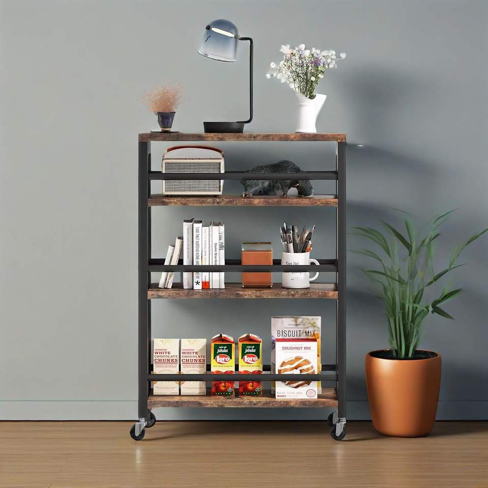 Carrello portaoggetti sottile a 4 ripiani con maniglia e ruote