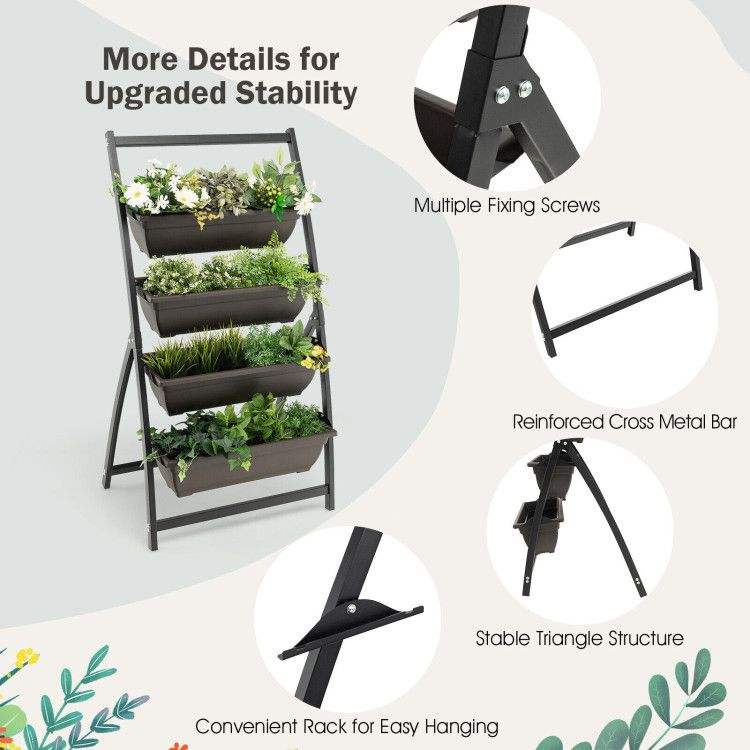 Fioriera Verticale a 4 Livelli con 4 Fori di Drenaggio e Contenitori per Fiori e Piante