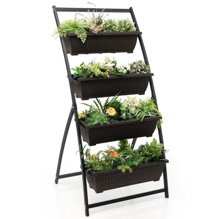 Fioriera Verticale a 4 Livelli con 4 Fori di Drenaggio e Contenitori per Fiori e Piante