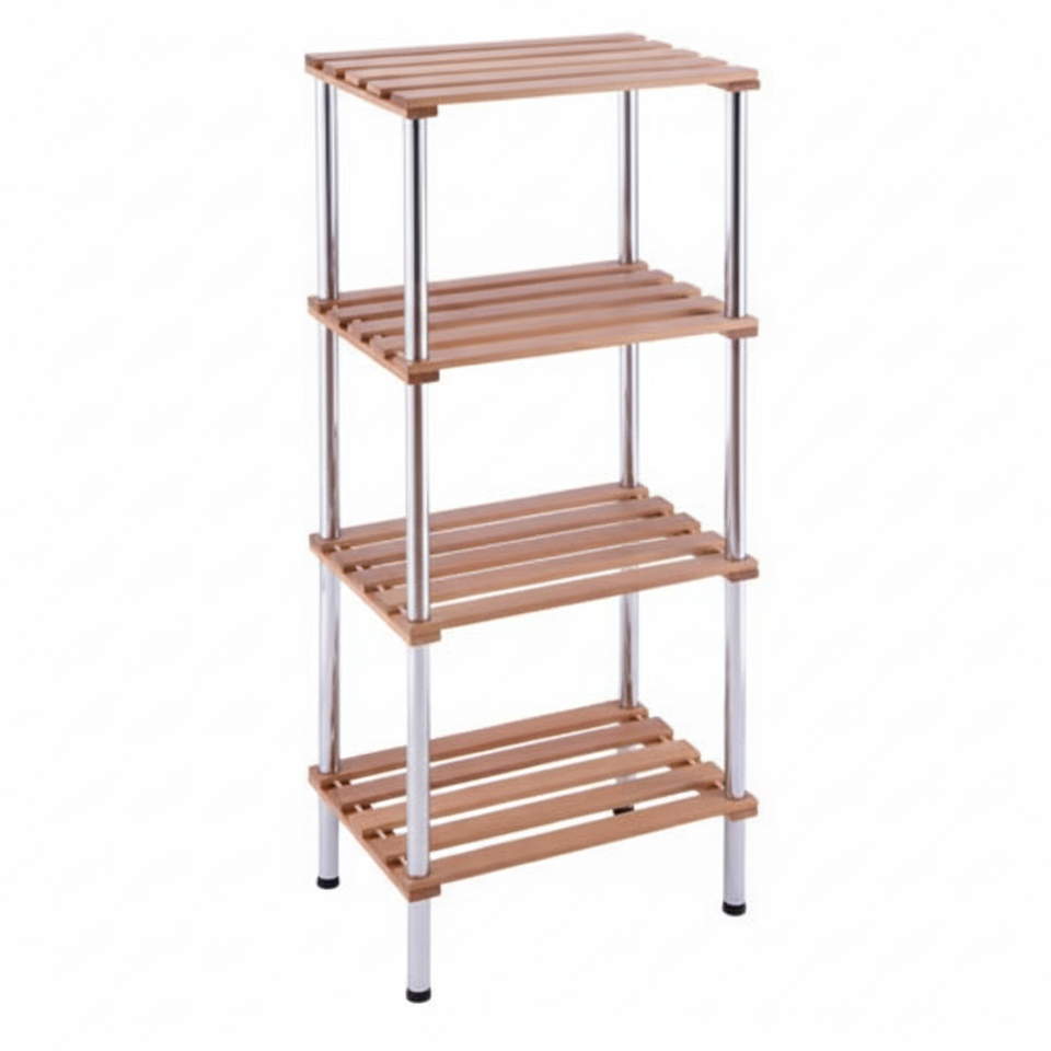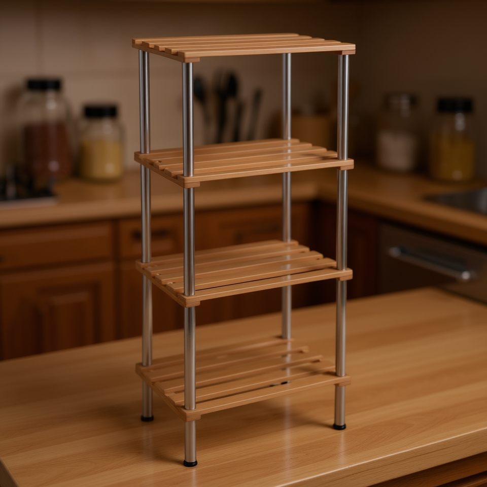 4 Tier Wood Slat Kitchen Storage Rack Display Shelving Freestanding Minimalist Multi Function 8-11.9in Depth 10in Height