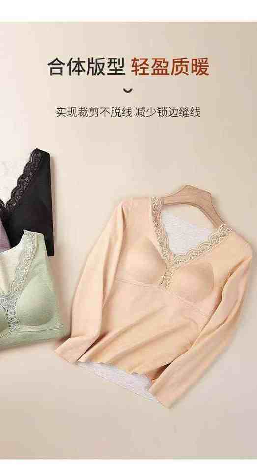 4-V063#Inventory-underwear Thick Warm Underwear with Chest Cushion As Base Autumn Clothes Long Sleeved Warm Top