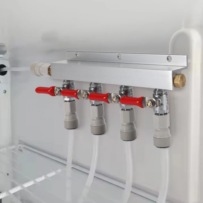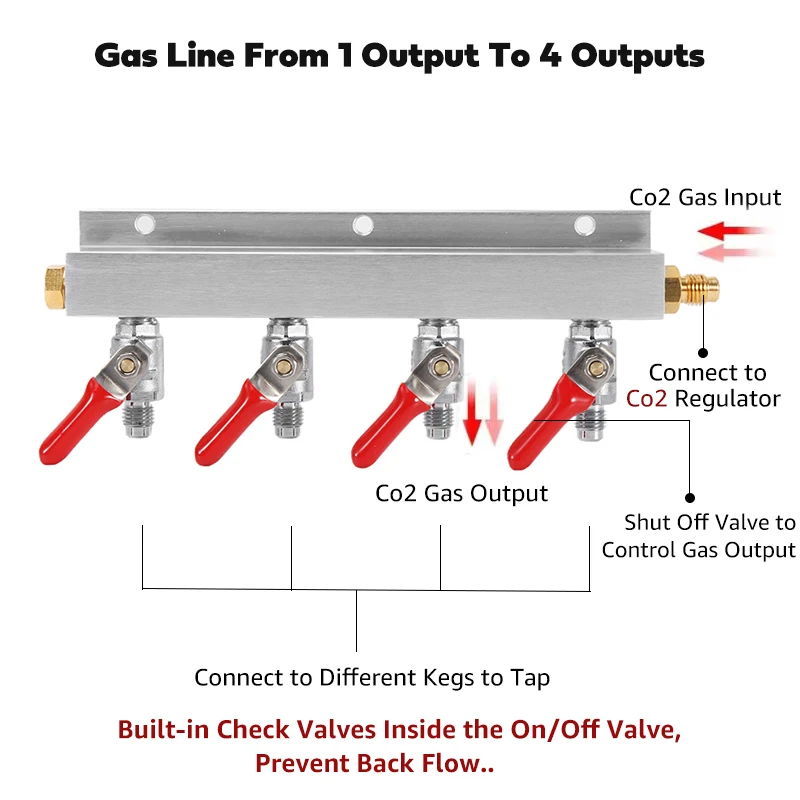 Distributore collettore Gas Co2 a 4 vie, 7/16-20 valvola di uscita rimovibile Splitter birra, supporto Push si adatta rapidamente giunto e Barb