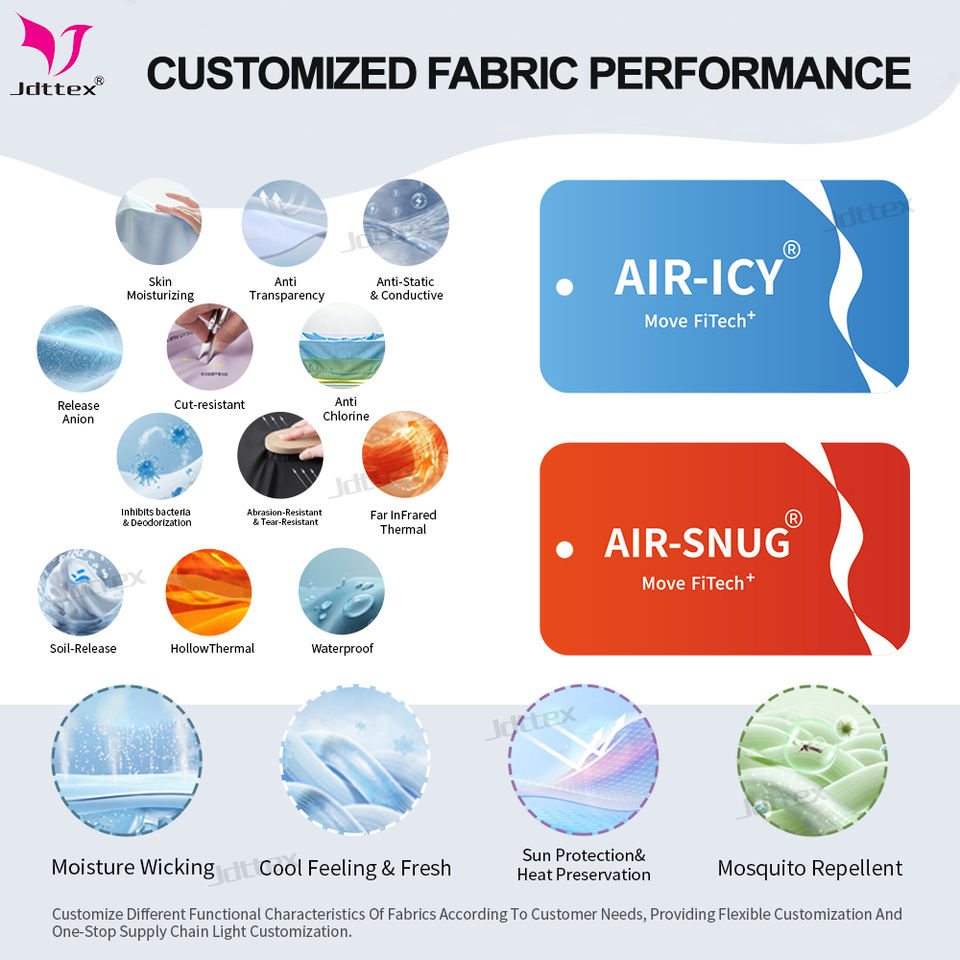 Stretch, Wicking, Quick-Dry, Moisture-Absorbent, Breathable