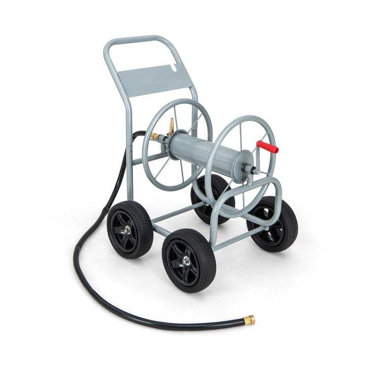 Carrello Avvolgitubo da Giardino a 4 Ruote con Impugnatura Antiscivolo