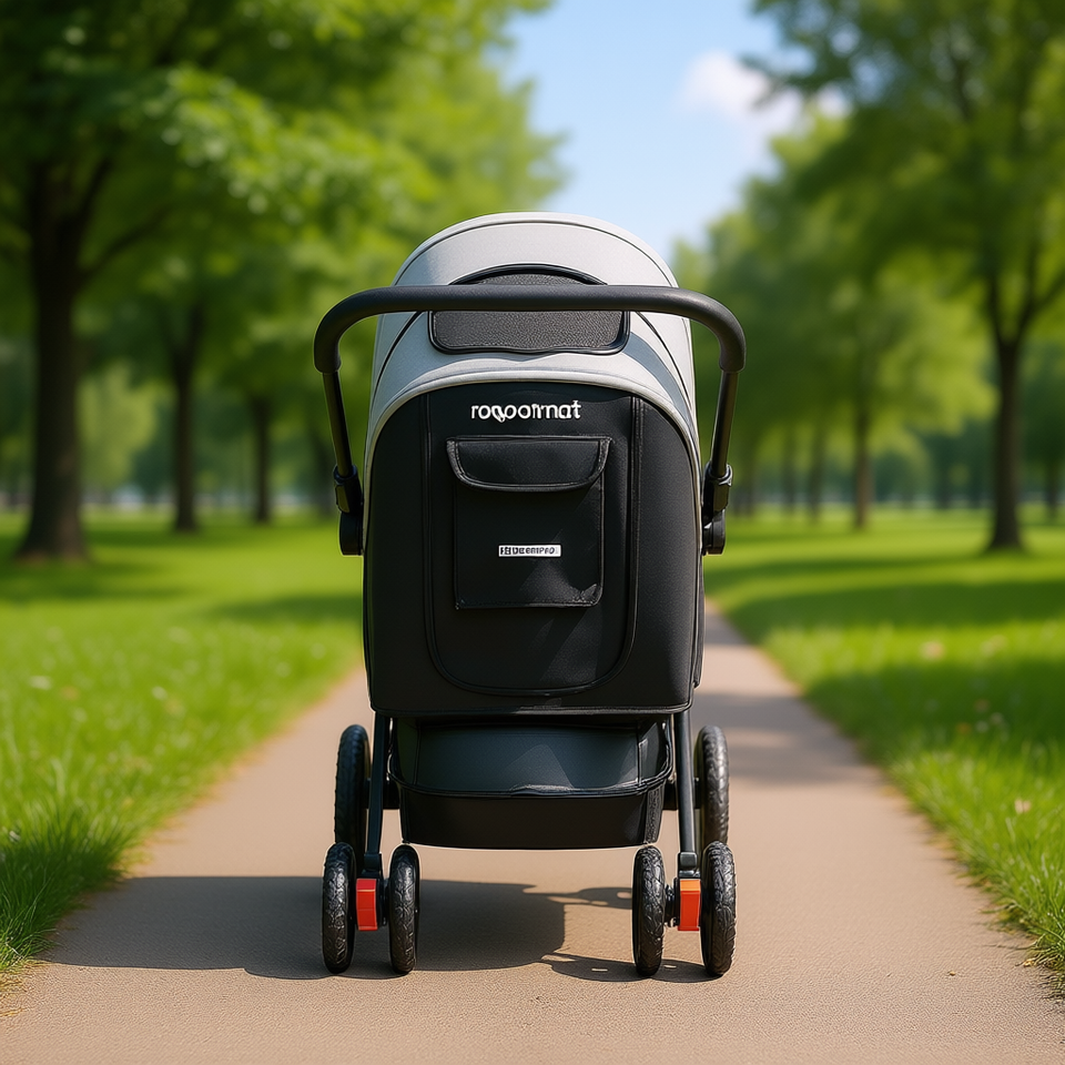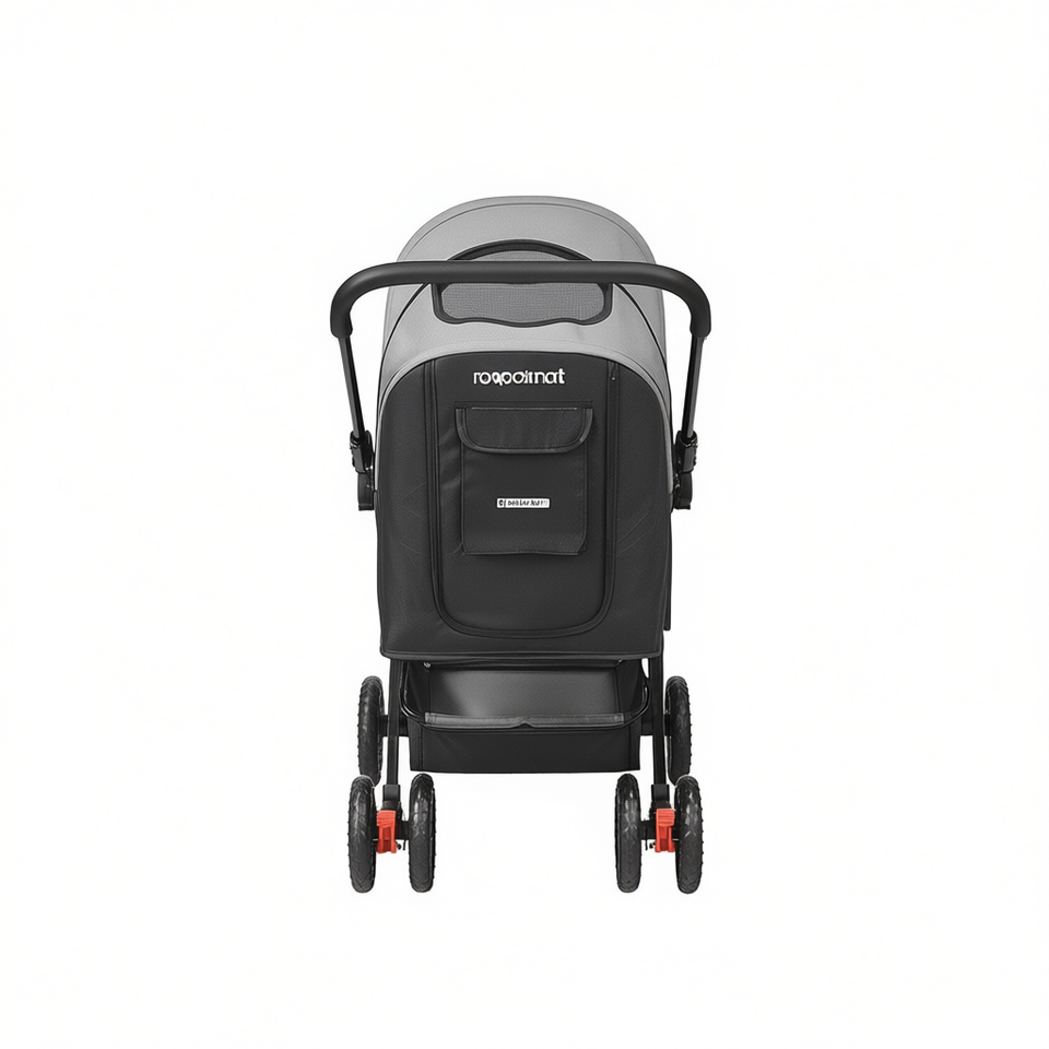 Passeggino per Cani Roooinat a 4 Ruote con Manubrio Reversibile, Capacità 20 kg, Nero e Grigio, per Cani e Gatti in Viaggio