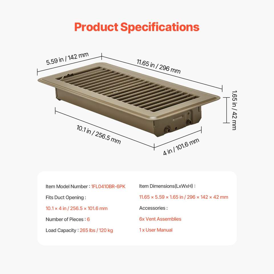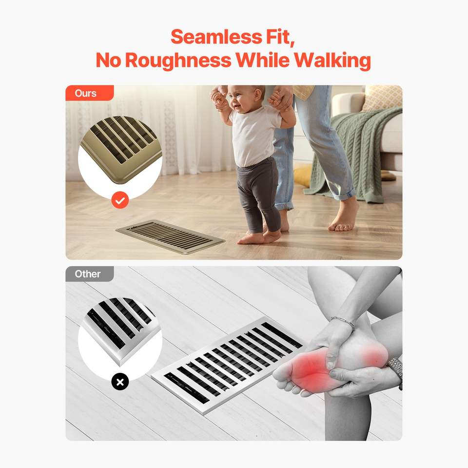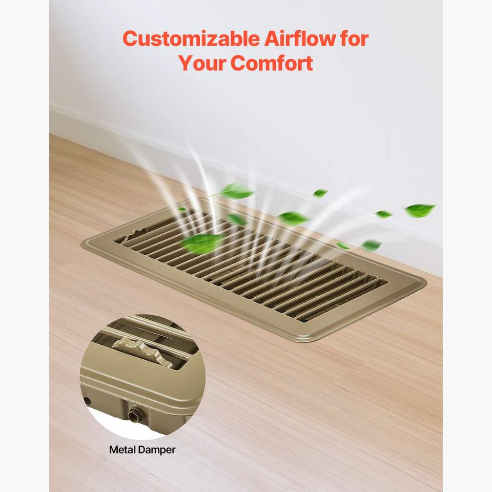 Griglie di ventilazione in ferro per pavimento, resistenti, da 4 x 10 pollici, confezione da 6, facilmente regolabili, per HVAC, calpestabili, antiruggine