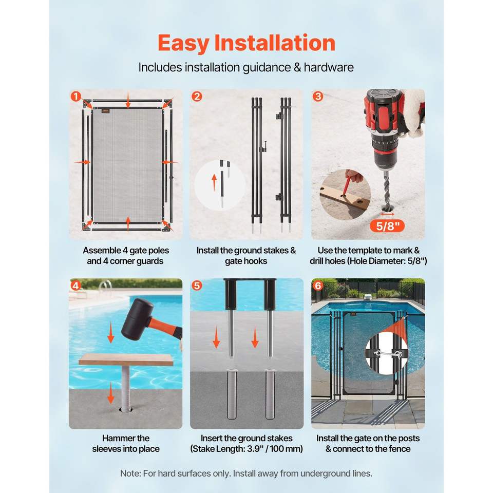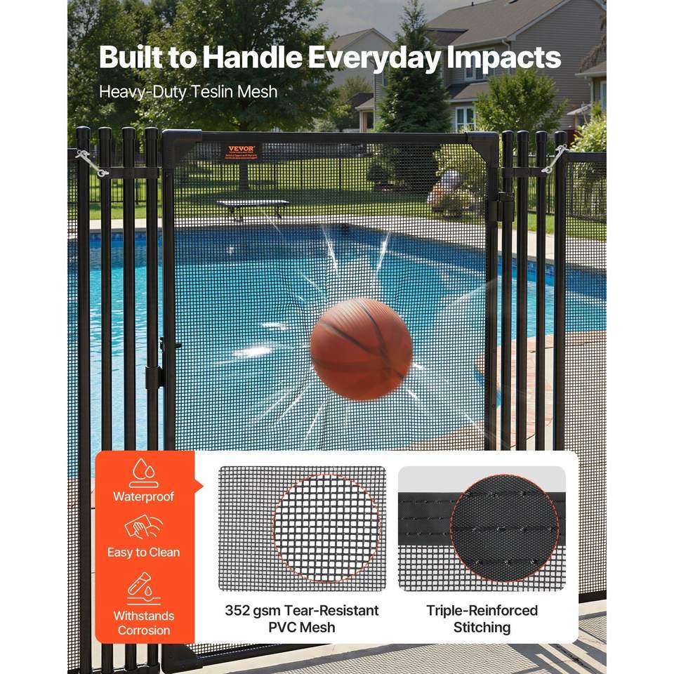 Kit Cancello di Sicurezza Interrato per Piscine 4 x 2,5 piedi, con Chiusura in Metallo 352 GSM, Accessori e Strumenti per Piscine
