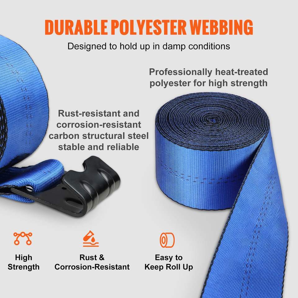 Cinghie per verricello 4 x 30 pollici, capacità di carico 6000 libbre, resistenza alla rottura 18000 libbre, gancio piatto, cinghie per camion, accessori per il controllo del carico auto