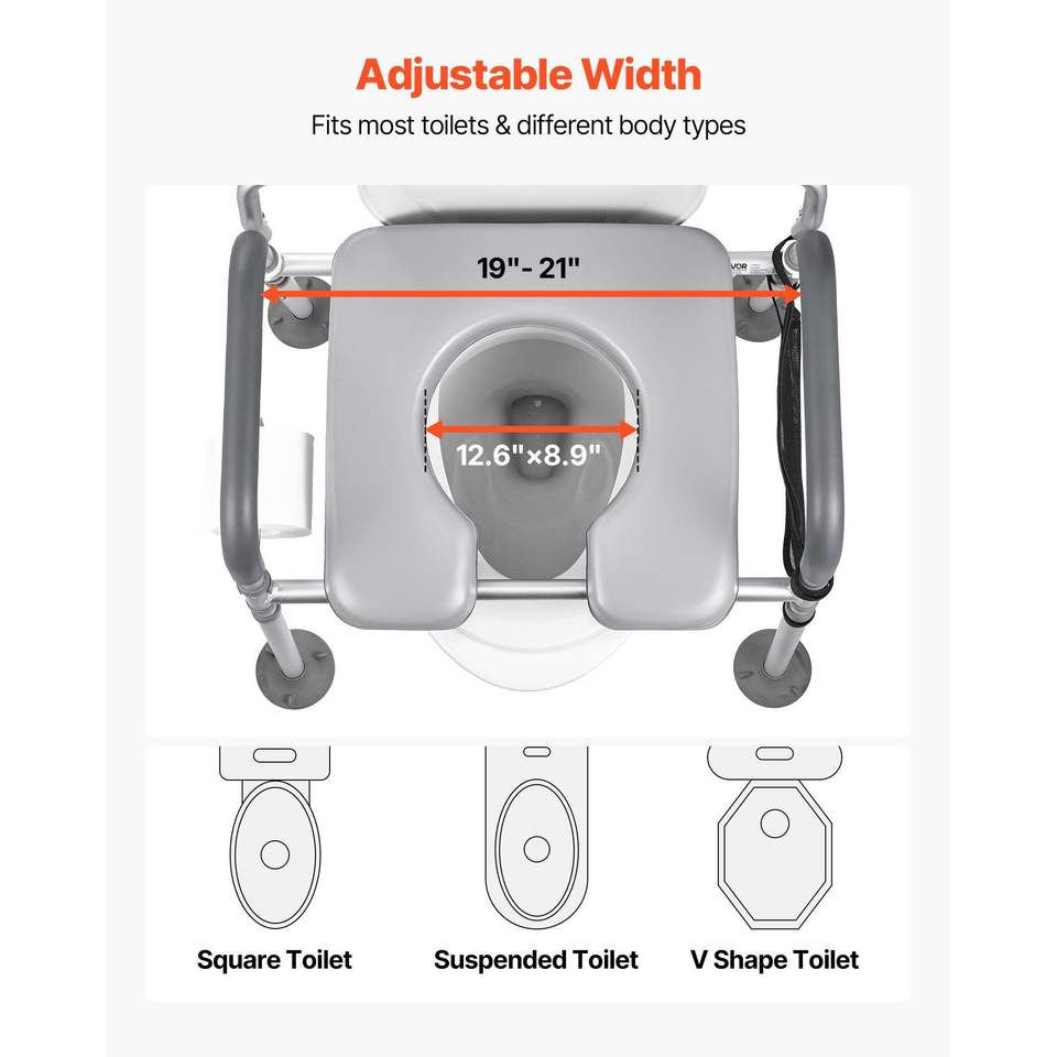 4-in-1 500 Lbs Adjustable Height Bedside Commode Chair Raised Toilet Seat Manual Wheelchair for Elderly Disabled Individuals